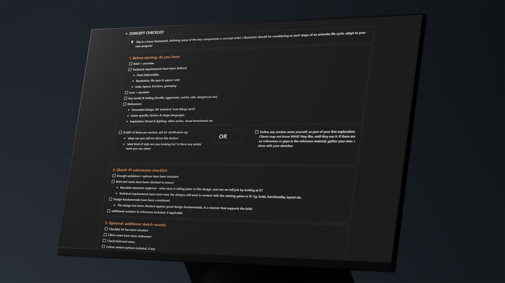 - ✅ Concept Artist’s Checklist: Follow a clear, stage-by-stage production guide to streamline your workflow and ensure nothing is overlooked.